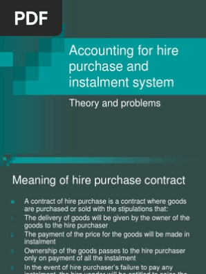 Accounting For Hire Purchase And Instalment System Pdf Lease Debits And Credits